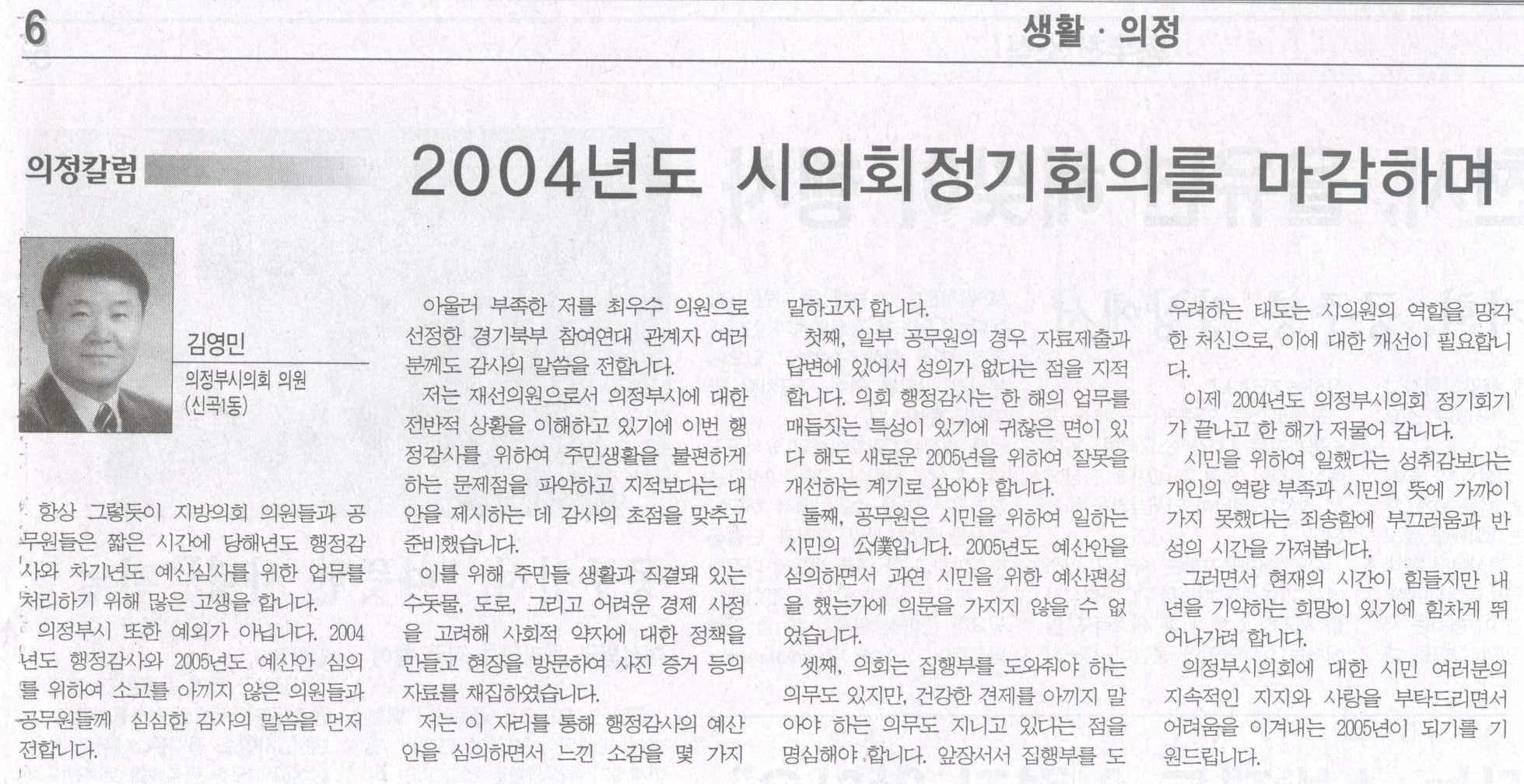 2004년도 시의회정기회의를 마감하며
