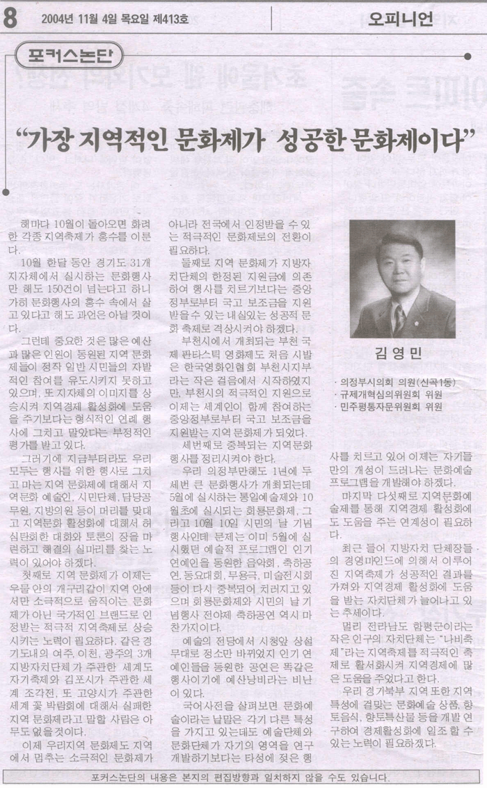 가장 지역적인 문화제가 성공한 문화제이다.