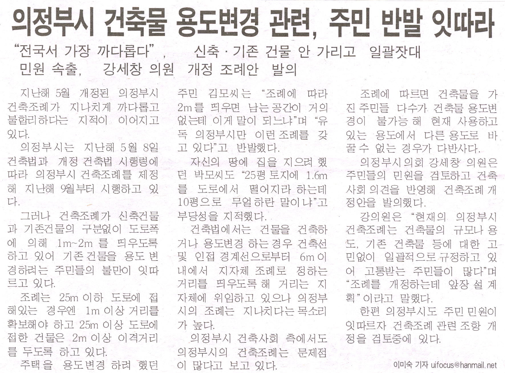 의정부시건축물 용도변경 강세창의원 개정조례안 발의