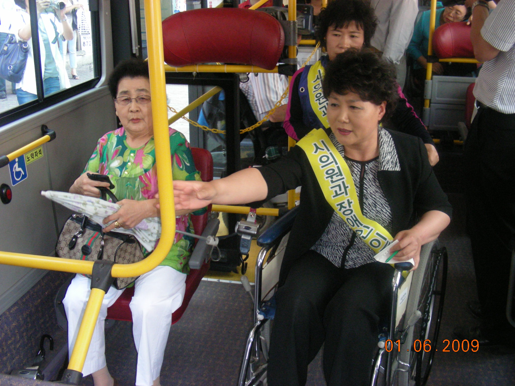 2009.6.1 의정부역 동부광장에서 의정부장애인차별철폐연대 주관으로 개최된 시의원과 장애인 이동권 체험 행사에 참석해 직접 휄체어를 이용하여 횡단보도와 관내 운행중인 저상버스를 탑승하는 등 장애인 이동권에 대한 소중한 체험을 하는 시간을 가졌습니다.