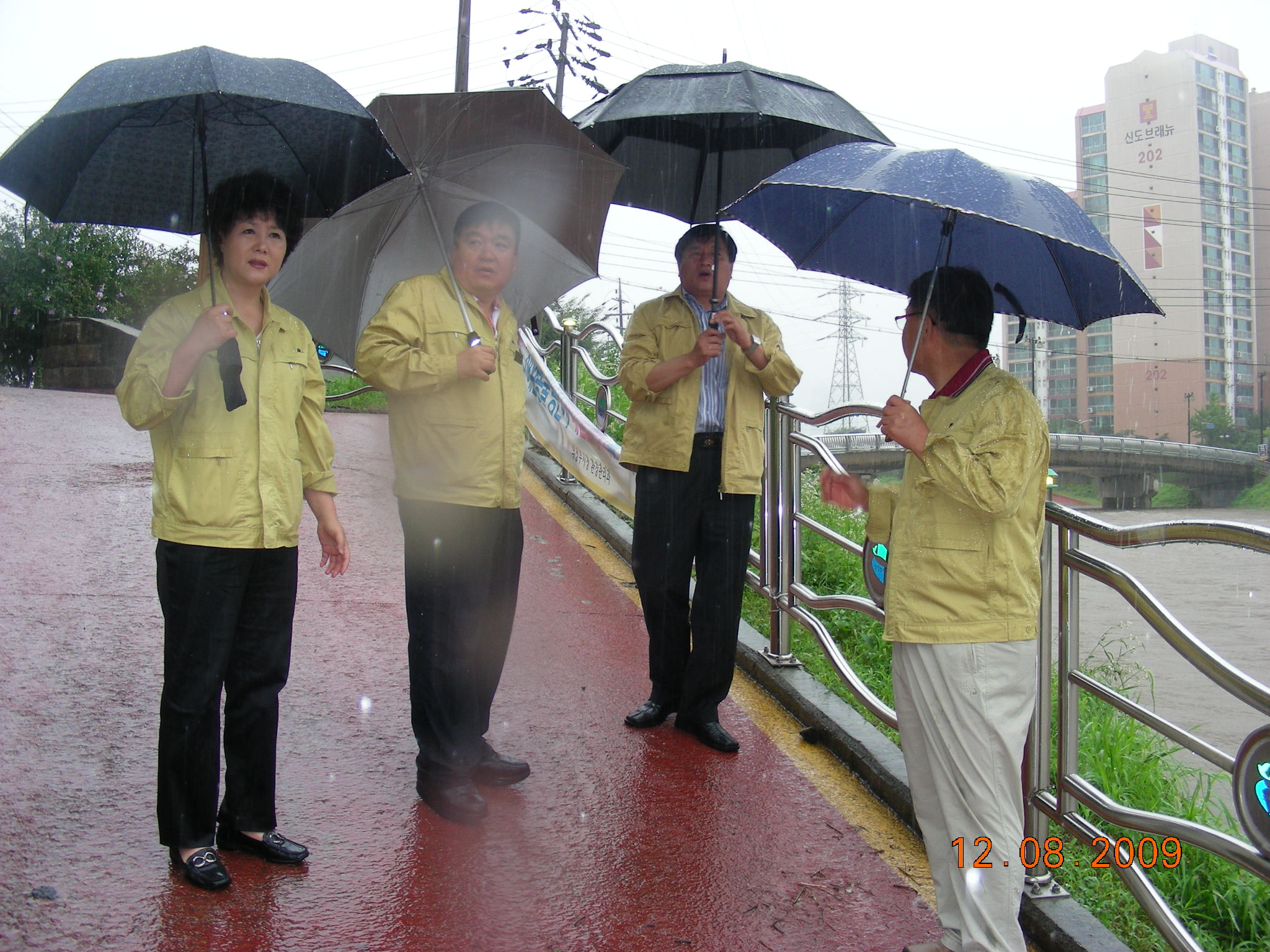 09.8.11~8.12 집중호우로 인한 주요 상습피해지역인 신흥교, 의정부3동 배수펌프장, 신곡동 청룡부락, 용현동 부용천 등 현장확인 활동을 하였습니다.
