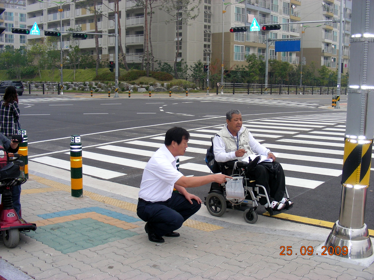 2009. 9. 25일,  기획복지위원장 김효열의원은 녹양역에서 금오동 사거리 방향까지 횡단보도의 경계석 및 기울기, 규정된 점자블럭 시공여부 등 ‘교통약자 인도 불편사항’을 직접확인하였습니다.