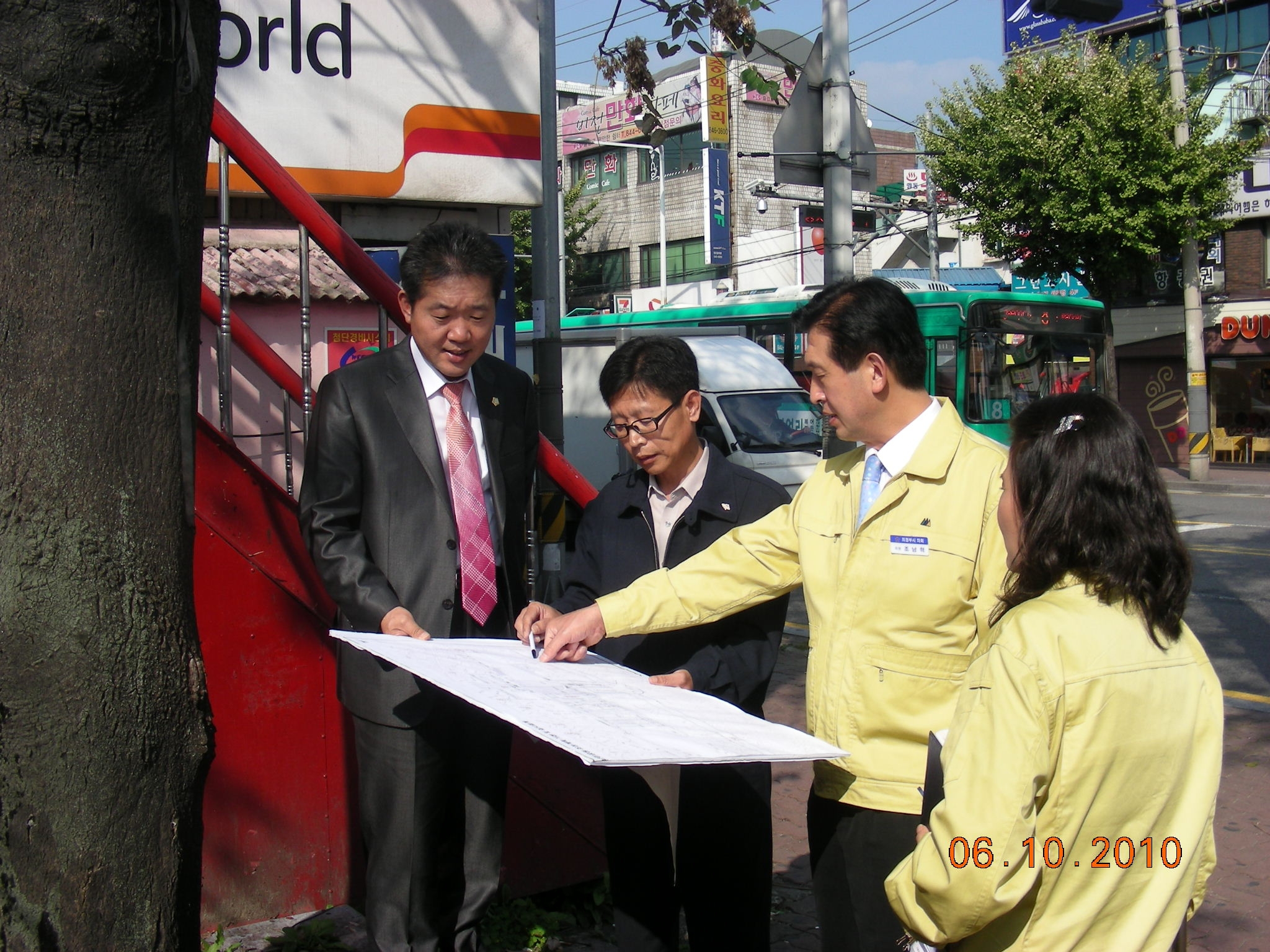조남혁 의원은 2010.10.6. 의정부역 앞 캠프 홀링워터의 도시관리계획(공원) 결정과 관련한 민원현장을 찾아 주변 여건 및 사업계획에 대해 확인하는 시간을 가진 후, 행복로를 찾아 시민불편 사항을 확인하는 시간을 가졌습니다.