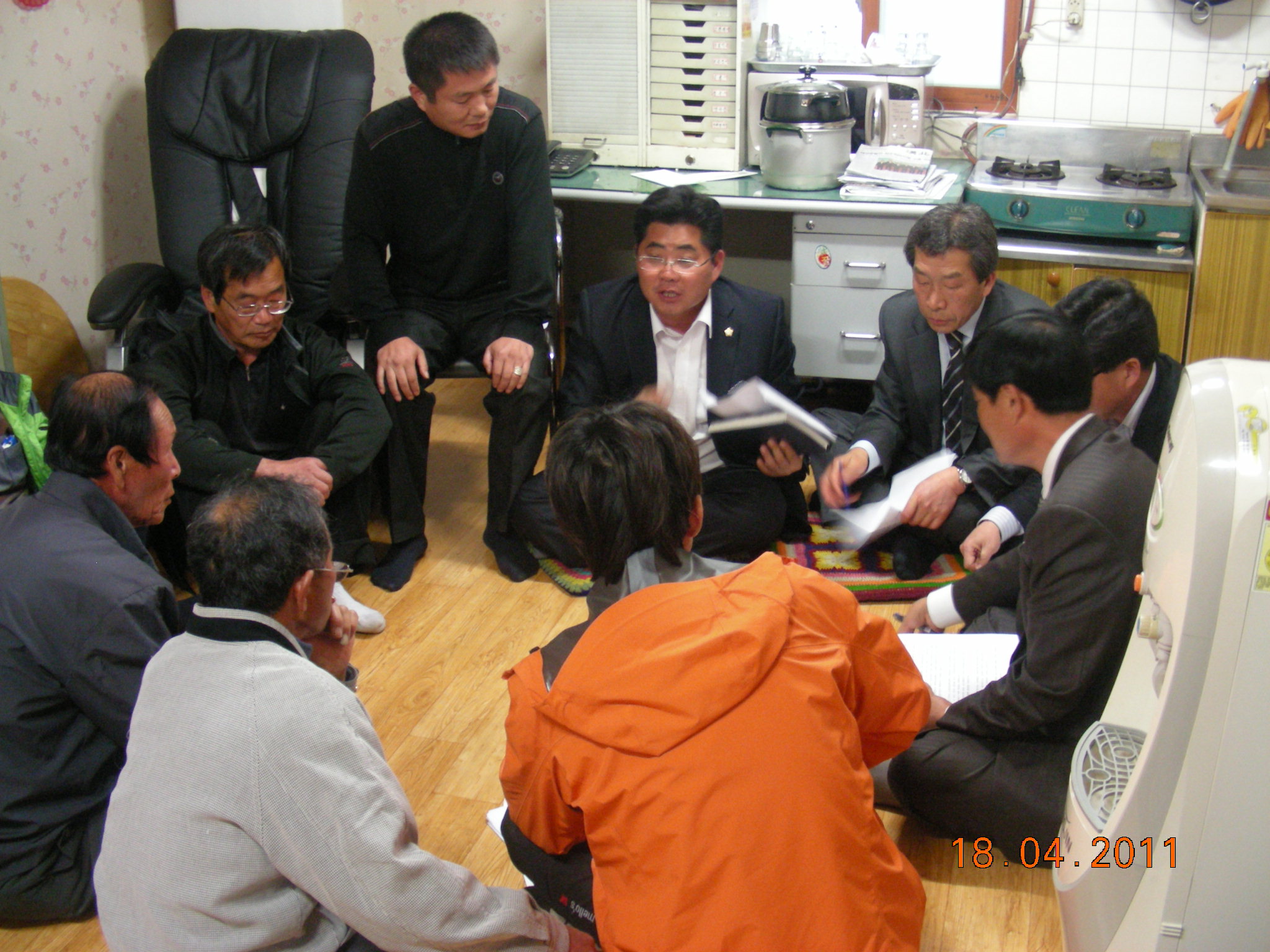 2011.4.18.(월) 김재현 의원은 산곡동 도로개설 관련 민원사항에 대하여 산곡경로당에서 주민들의 의견을 청취하고 해당부서 관계자와 논의하는 시간을 가졌습니다.