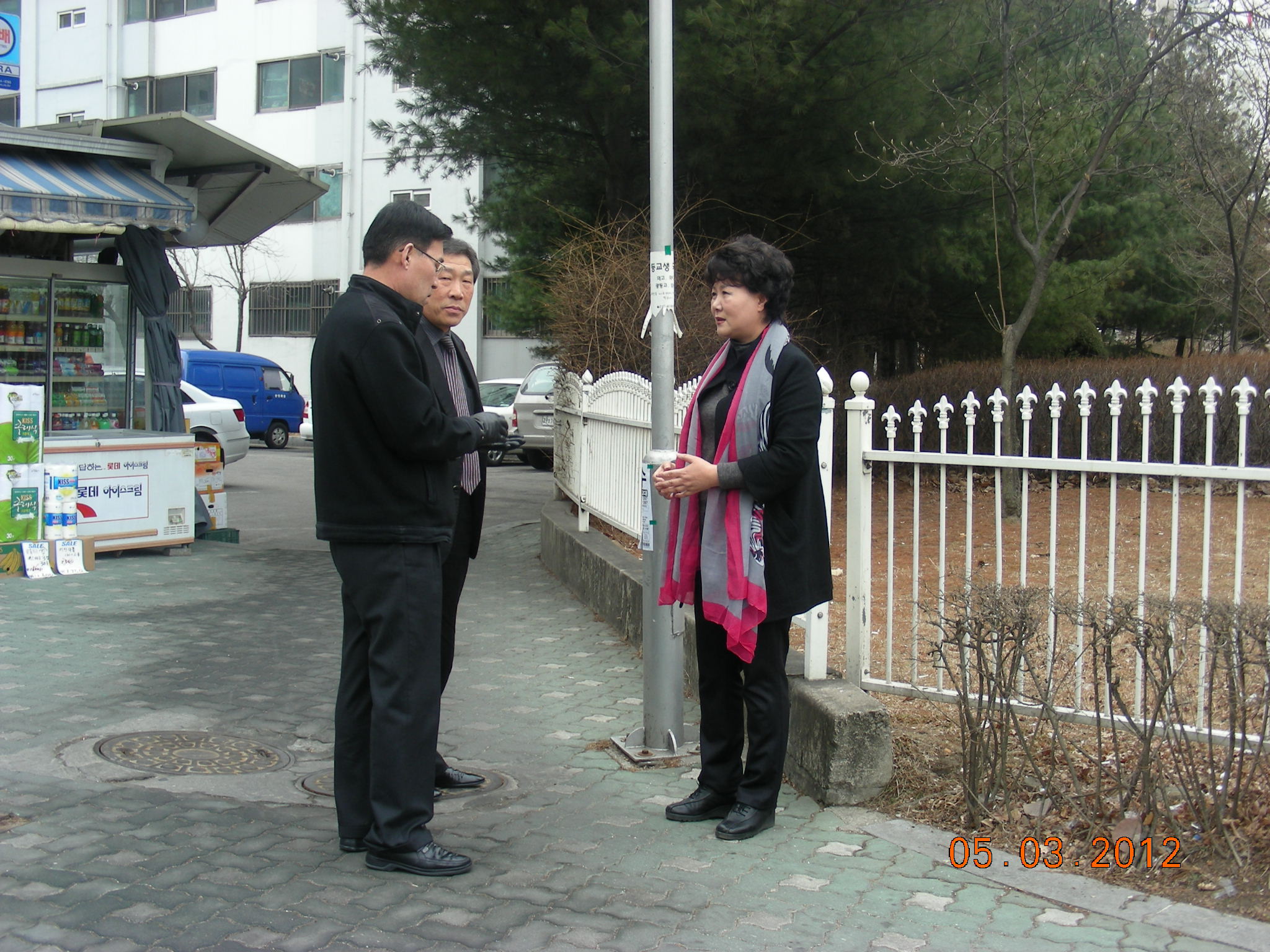 2012.3.5(월), 빈미선 의원은 호원동 S커브 시유지 매입 요구, 호원동 건영아파트 인근 소공원내 정자 설치  등 민원사항에 대하여 현장 확인 후 주민 의견 청취 및 집행부 관계자와 논의하는 시간을 가졌습니다.