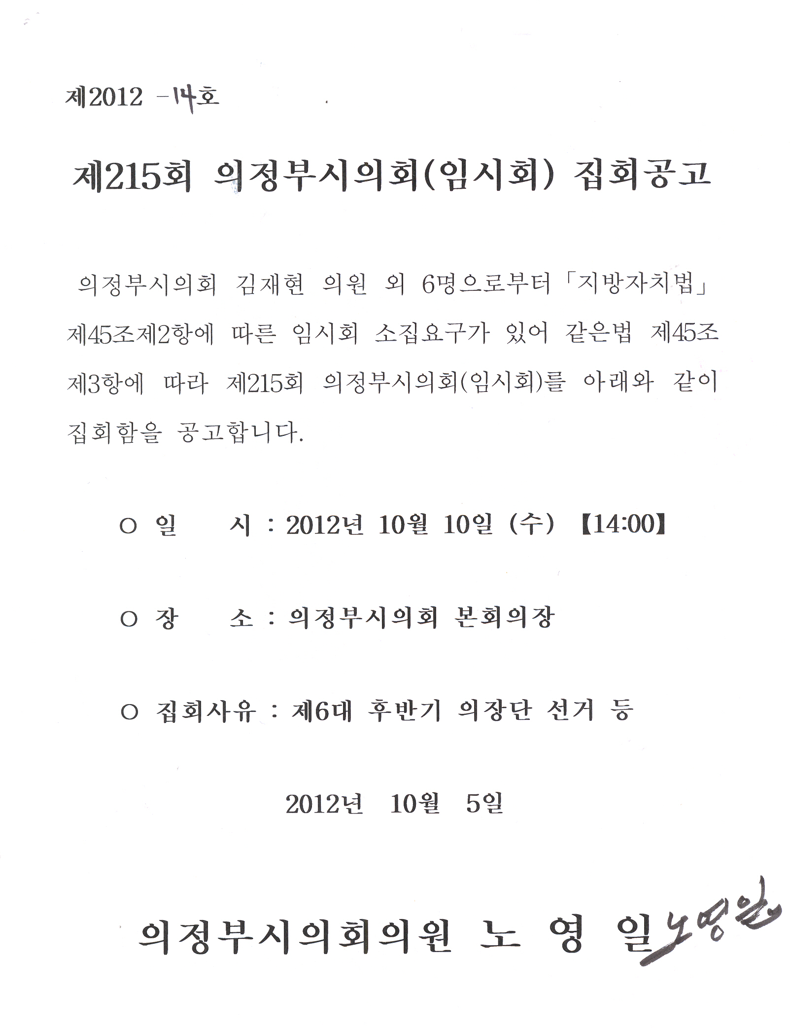 제215회 의정부시의회(임시회) 집회 공고 관리자 2012-10-05 47