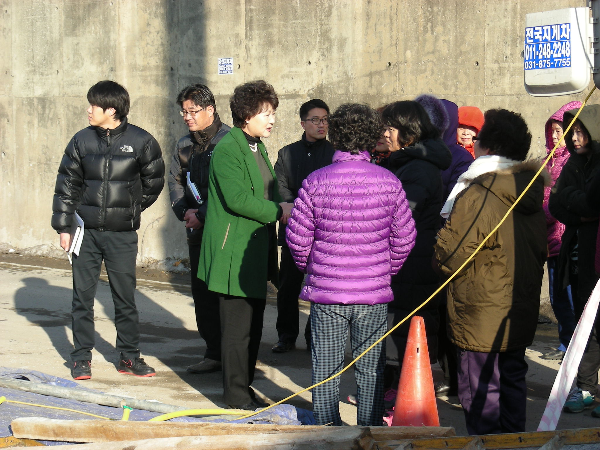 2013.12.27.(금) 빈미선 의원은 호원동 선재동자원 인근 건물 신축 공사장 주변지역을 방문하여 피해사항을 확인하고 관계자 및 주민들과