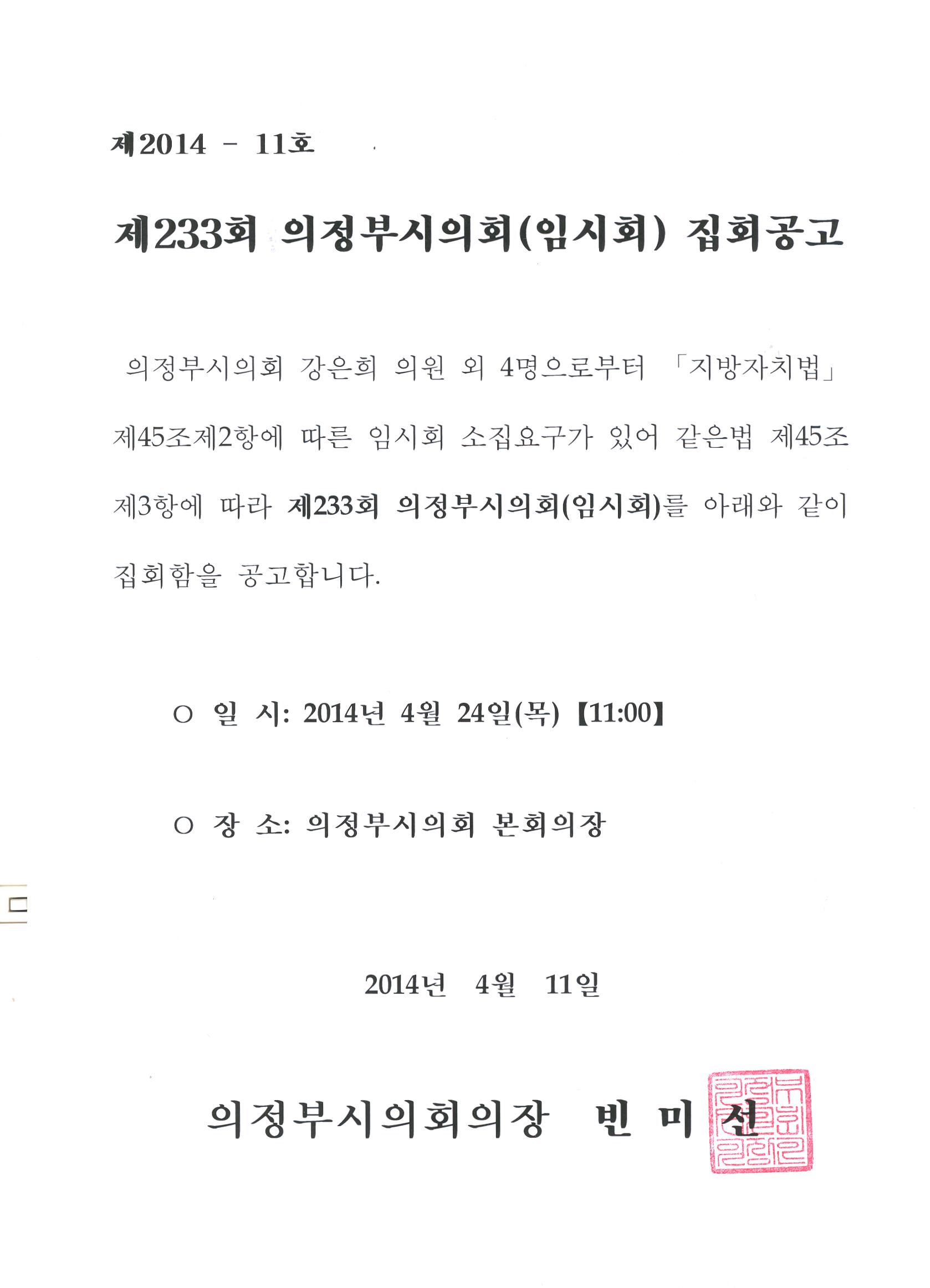 제233회 의정부시의회(임시회) 집회공고 관리자 2014-04-14 42