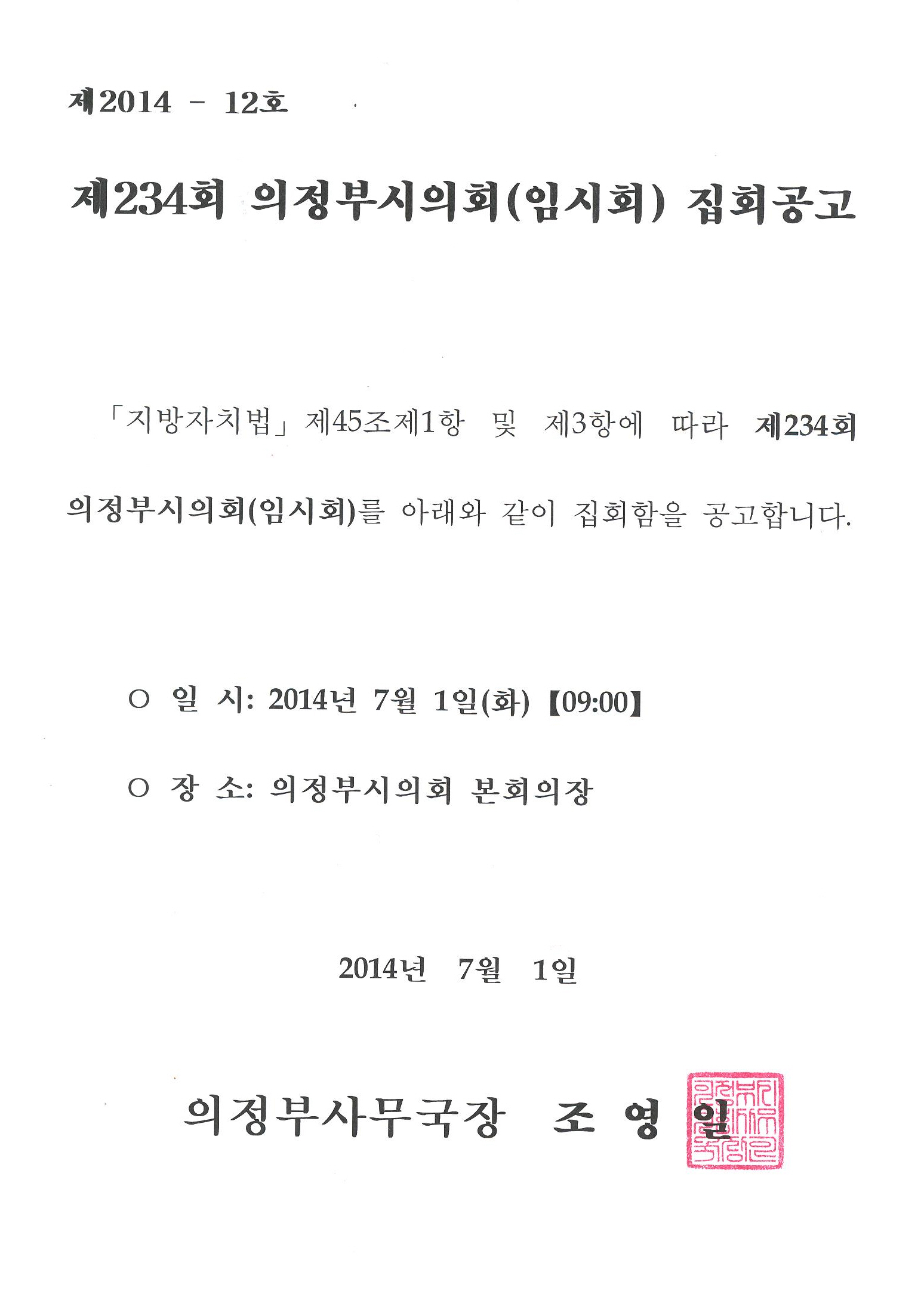 제234회 의정부시의회(임시회) 집회 공고 관리자 2014-07-01 51