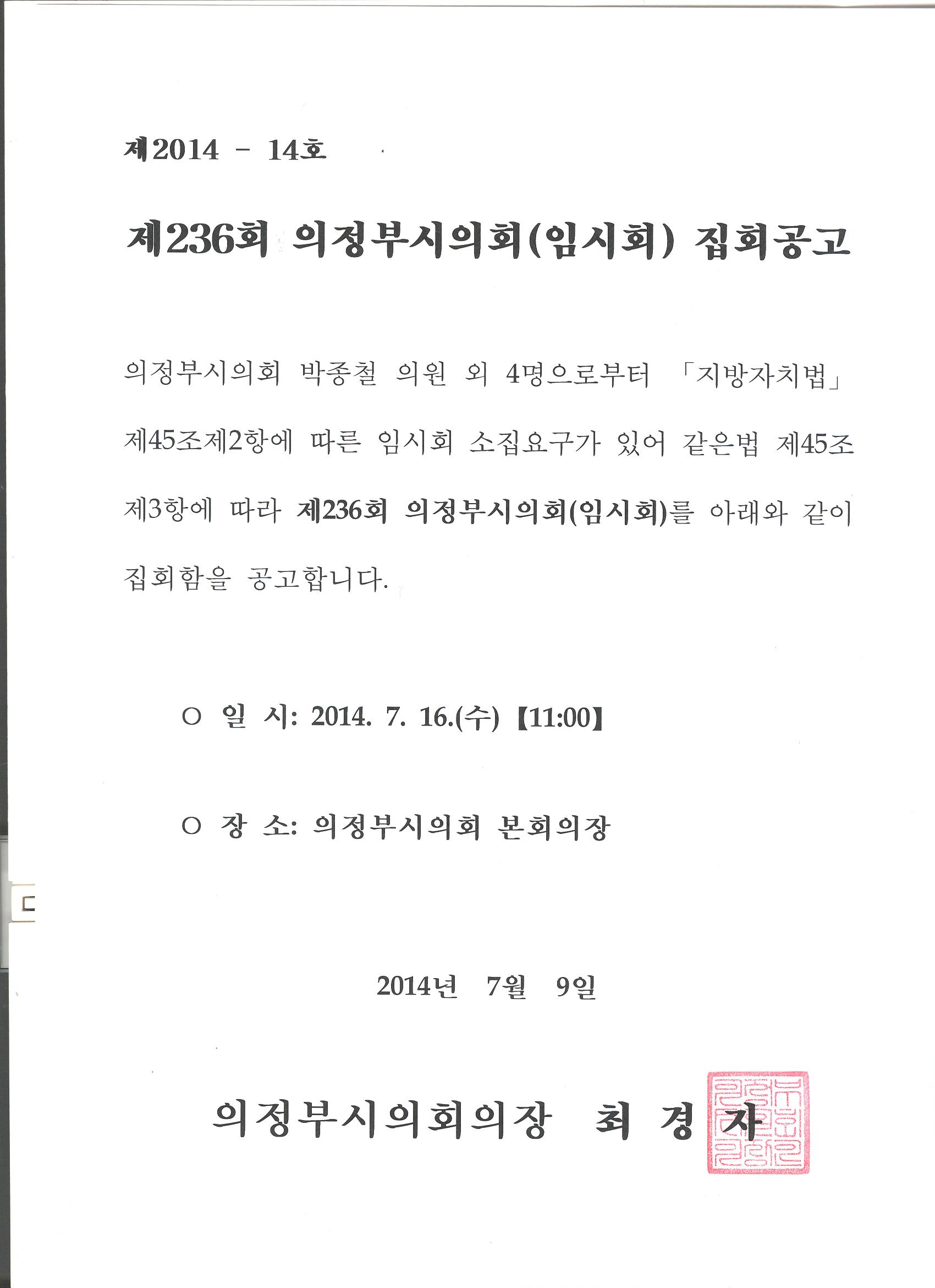 제236회 의정부시의회(임시회) 집회공고 관리자 2014-07-10 60