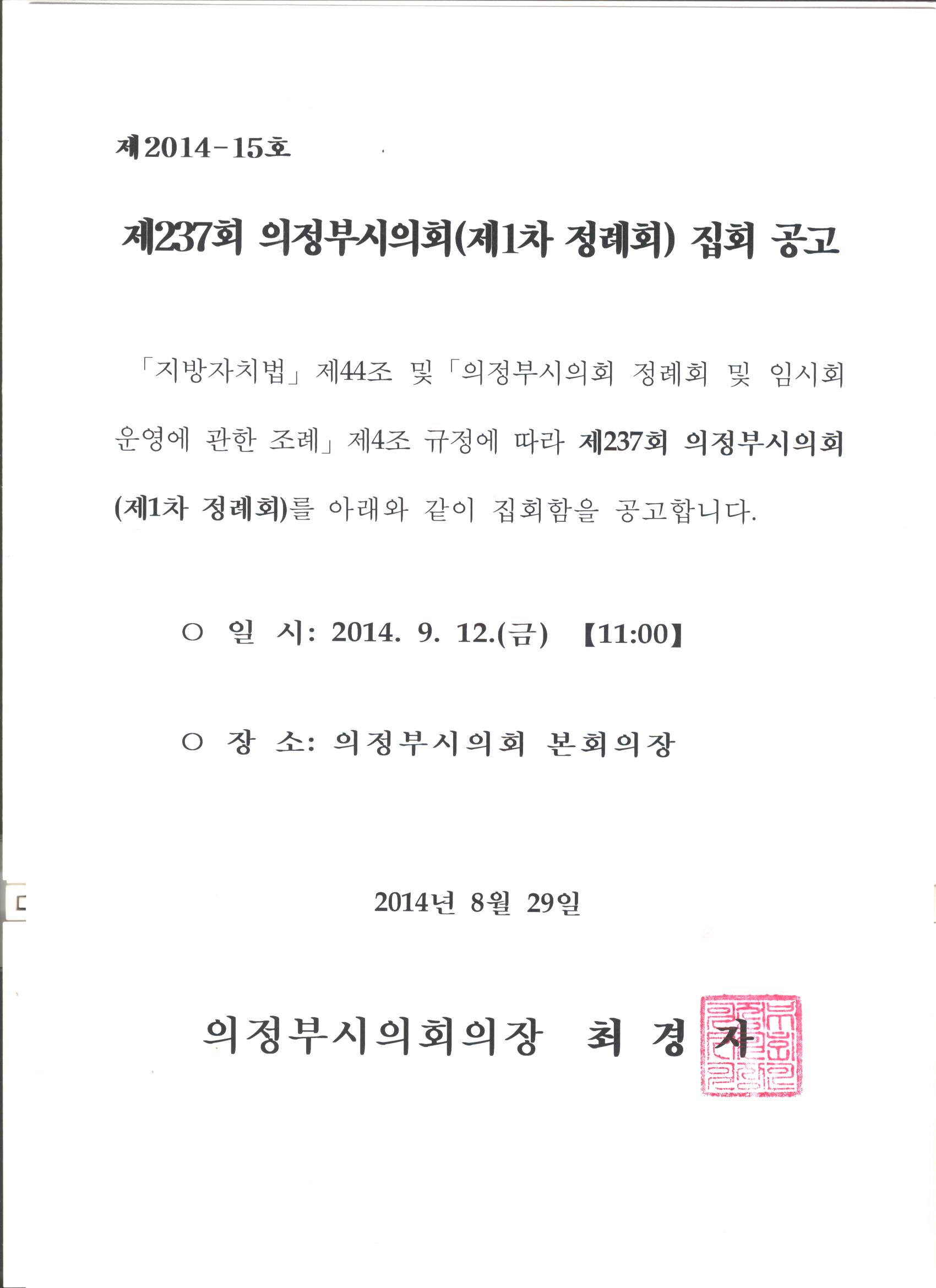 제237회 의정부시의회(제1차 정례회) 집회공고 관리자 2014-09-02 46
