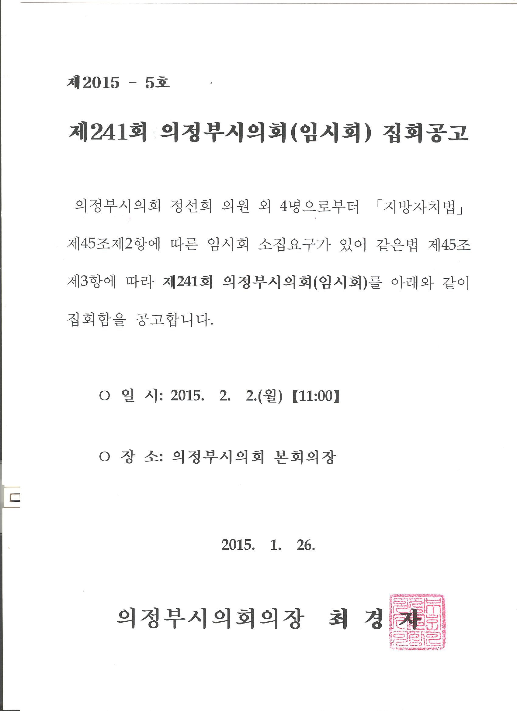 제241회 의정부시의회(임시회) 집회공고 관리자 2015-01-26 53