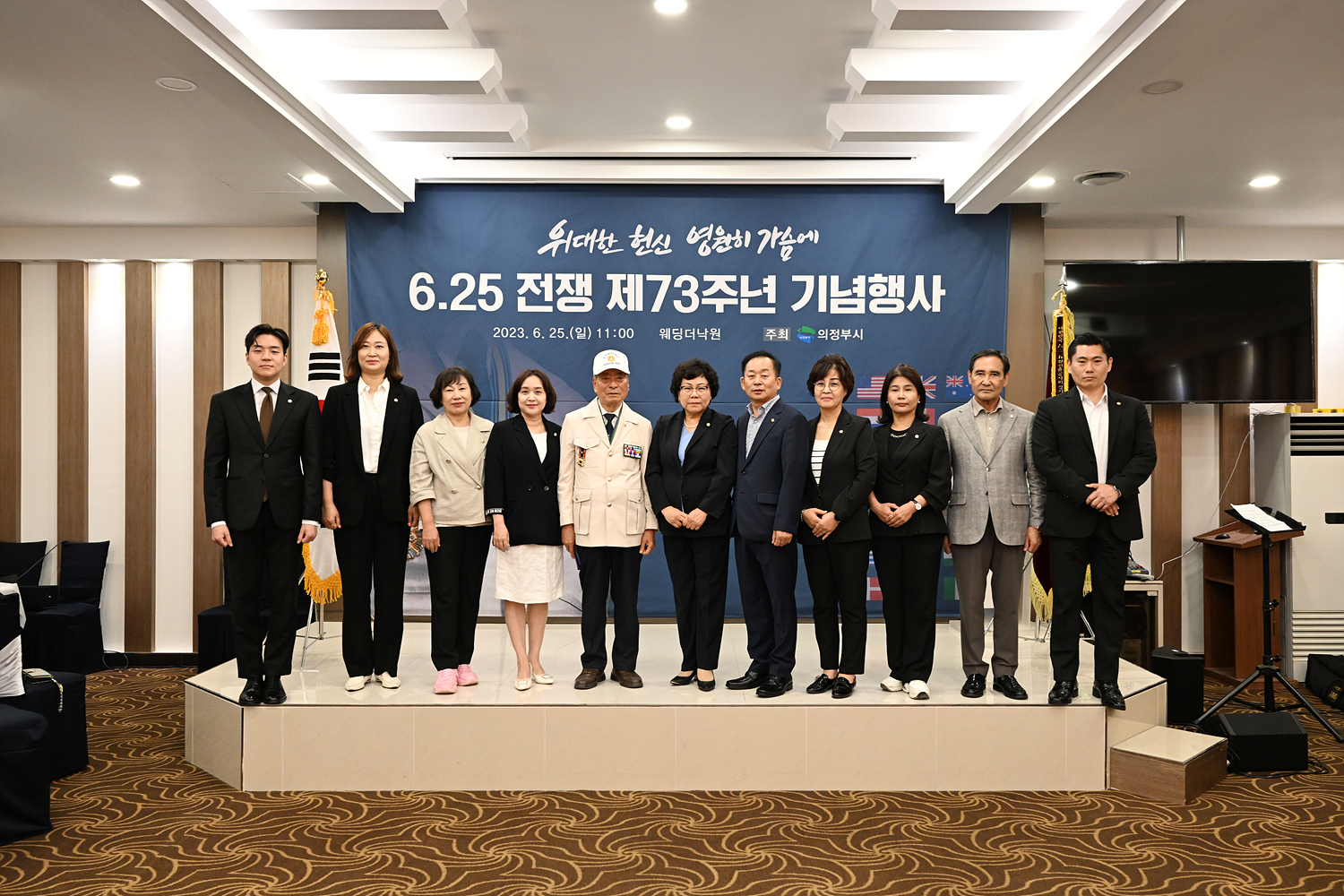 의정부시의회(최정희 의장)는 지난 25일 의정부동 웨딩더낙원에서 열린 6·25전쟁 제73주년 기념행사에 참석했다. 조국 수호에 헌신한 참전용사의 넋을 기리기 위해 마련된 이날 행사는 최정희 의장을 비롯한 시의원과 의정부시장, 보훈단체 및 안보단체 등 130여 명이 참석한 가운데 국민의례, 모범 국가유공자 표창, 6·25의 노래 제창, 위로연순으로 진행됐다. 기념식에 참석한 의원들은 “조국의 자유민주주의 수호를 위해 싸운 참전용사들의 위대한 헌신에 존경과 감사드린다”라고 말했다. 최정희 의장은 “전쟁에서 실천한 애국과 자유민주주의 정신을 본받아 평화와 국가발전에 이바지할 수 있도록 노력하겠다”며 “우리 시의회는 참전용사에 대한 합당한 보상과 예우가 이뤄질 수 있도록 노력하겠다”라고 밝혔다. |