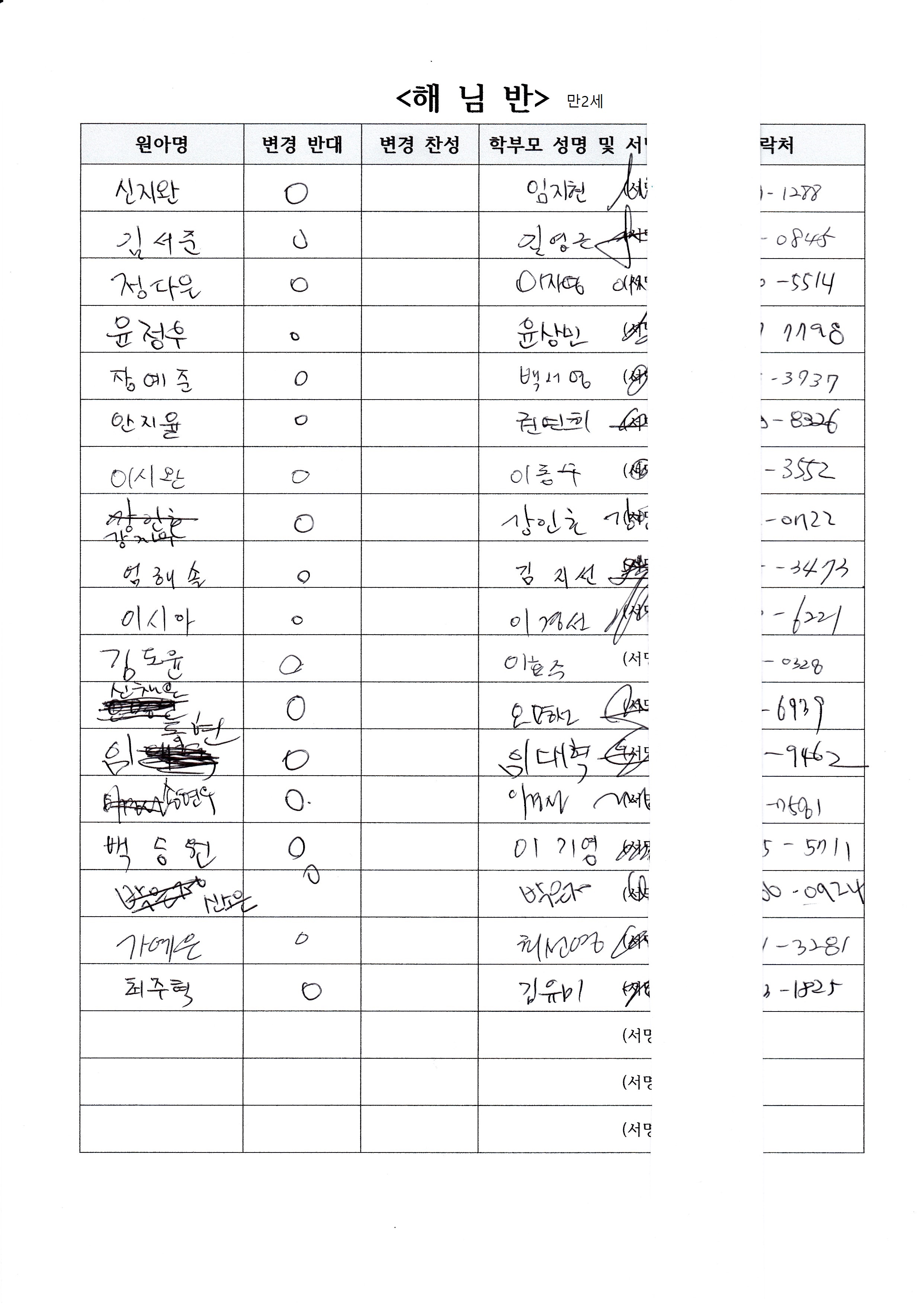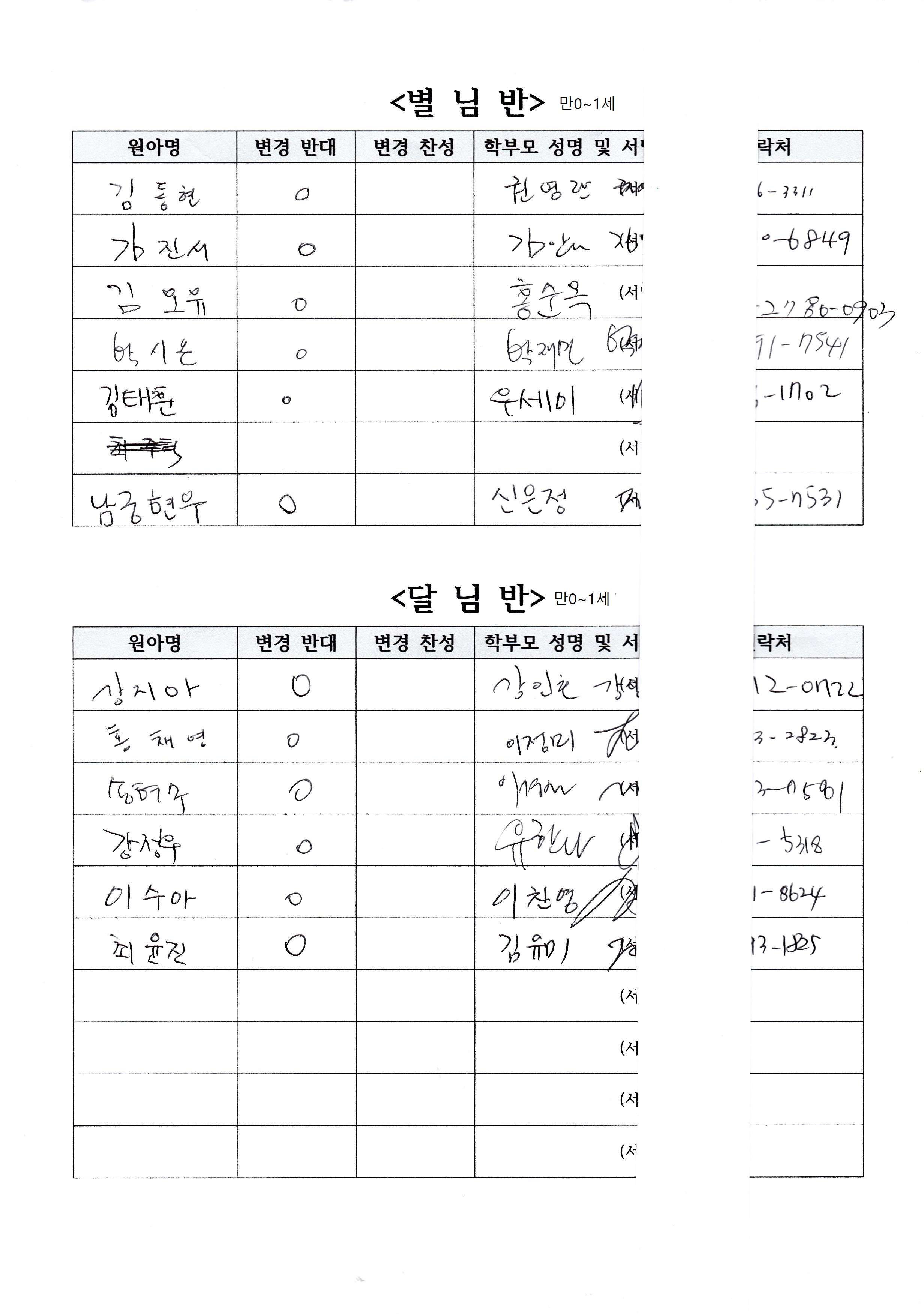 아동수당 신청을 알아보던 중 시청홈페이지에서 어룡어린이집 위탁자 공고모집문을 우연히 보게되었습니다. 이미 위탁자모집은 마감상태였고 인터뷰 또한 끝난 상태여서 심사 기간이기에 시청을 방문하여 담당자분께 현재 어떻게 진행되고 있는 상황인지 문의를 했습니다. 얘기 중 이미 심사는 끝났고 다른 업체로 변경될 것이며 원장 또한 다른업체에서 내세운 분으로 교체될 것이라 하시더군요. 저희 학부모들은 너무 놀라웠고 이렇게 중대한 일이 학부모 의견이나 참여 없이 또한 아이들에 대한 걱정 하나없이 어떻게 하루만에 다른업체로 다른원장으로 변경되는것을 심의할 수 있는지 물었습니다. 담당자들은 법적으로 학부모들의 의견은 수렴할 필요가 없고 때문에 의견을 들을 필요가 없다 말씀하셨습니다. 아이들을 위해 존재하는 보육과이고 아이들을 위한 어린이집인데 아이들은 안중에 단1도 없이 도대체 누가 어떠한 이유로 적격한지 아닌지를 앉은 자리에서 판단을 할 수 있는지...저희 학부모들은 이해할 수가 없습니다. 학기중 주체자가 바뀌면 아이들에게 어떤 혼란을 초래할 수 있는지 단 1초도 생각해보지 않고 그저 서류상 문제가 없으니 법적으로 그럴 의무가 없으니 최소한의 일만 하는 공무원들의 행태에 너무 화가났습니다. 어떤 업체가 어떤 교육관을 갖고 계신 원장님과 들어오는지 학부모님들께 설명을 해주시고 학부모님들의 의견을 좀 들어주십사 했지만 자기들이 그럴 필요가 법적으로 없다. 할 이유가 없다 하셨습니다. 학부모 의견 수렴 조항을 놓고싶으면 법을 고쳐야하니 민원을 제기하시라...더군요. 넣을 수 있는데는 다 민원을 넣으라는 조언도 잊지 않으셨습니다. 최종결정권자이신 시장님을 만나뵙고자 비서실장과 얘기도 했음에도 저희를 무시하셨고 비서분과 보육과장님은 의정부시 보육정책위원회 위원장은 부시장님이시니 부시장님을 만나서 얘기해 보시라기에 2시부터 3시30분에 회의가 있으시다기에 1시간 30분간 회의끝나기를 기다려가면 부시장님을 기다렸지만 이 또한 어느누구도 부시장님께 약속을 잡지않고 거짓으로 저희를 기망하였습니다. 우연히 시청홈페이지를 보지 않았다면 어린이집 학부모 전체는 7월3일 고시후 일방적인 교체 통보를 받을 것이고 그 피해는 고스란이 아이들에게 갈거라 생각됩니다. 위탁업체 선정과정에 학부모 의견이 꼭 포함되어야 하고 업체변경과 원장변경은 학기중이 아닌 학기말~학기초사이가 되어야 한다 생각합니다. 그것이 아이들이 받는 충격을 최소한 할 수 있는방법이라 여겨집니다 저희 어린이집 학부모들은 어제 늦은밤 긴급총회를 열고 의견을 수립하였습니다. 업체변경과정에 학부모들의 참여가 있어야 한다는것에 모두들 의견을 수렴해 주셨고 현재 학기중인 이 상황에 업체와 원장의 변경을 반대하시는 분이 144명중 120명이었습니다. 저희는 힘없는 엄마들입니다. 이 업체의 편도 아닌, 저 업체의 편도 아닌, 그저 우리 아이들의 편에서 우리 아이들이 즐겁고 안전하게 믿을 수 있는 환경에서 지낼 수 있길 바랄뿐입니다. 그 누구도 엄마들보다 더 아이들을 잘 이해할 수 없다 생각됩니다. 현재 우리어린이집은 0세부터 재원하고 있습니다, 말 못하는 아기들이지만 오감만은 언니오빠들보다 어른들보다 발달해있지요 그들은 우리 아이들이 말못하는 또는 선거권이없는 무시해도 되는 존재로 생각하지만 아이들이 누구보다 변화를 몸으로 느끼며 불편해하고 힘들어 할것이라는거 꼭 겪어보지 않아도 알 수 있는 사실입니다. 또한 일어나지 않은 불안으로 유난떠는 엄마취급하는 담당자들 태도에 개탄을 금할 길 없습니다. 엄마들은 아이들의 안전을 위해 불은 만지지않아도 뜨겁다는것을. 사고를 겪지않고도 주차장에 뛰는것은 위험하다는것을. 찻길을 건널때는 항상 좌우를 살피고 건너라고 조심하라 조심하라 입에 달고 삽니다. 혹여나 일어날 수도 있는 일이 우리아이에게 일어나지 않도록 보살피고 양육하는것을 당연시하고 살아가고 있습니다. 이번 어른들의 안일한 일처리로 우리 아이들이 혹여 겪을수도 있는 만일에 사태에 걱정하는것을 엄마로서 당연하다고 생각합니다. 법적으로 문제가 없기에 밀어부쳐도 된다 생각하는것은 부모들이 아이들을 단지 의식주만 해결해주는 존재여도 법적으로 아무 문제 없다는 것과 무엇이 다른지... 부모라면 단순히 의식주만을 위해 존재하는것은 아닌것처럼 모든 아이들을 위한 행정기관은 법이 우선이 아닌 아이들이 우선인 기관이어야 한다고 생각됩니다. 모든 보육 정책은 최우선 순위가 아이들 이어야 합니다. 위탁체 선정관리 표준안보다 아이들이 우선이어야 합니다. 과연 누구를 위한 행정인지 다시한번 생각해 주시기 바랍니다. 어룡어린이집 학부모들은 학기중 업체변경과 원장변경은 반대한다는 입장입니다. 학기중 변경을 재검토 해주시기 바랍니다.