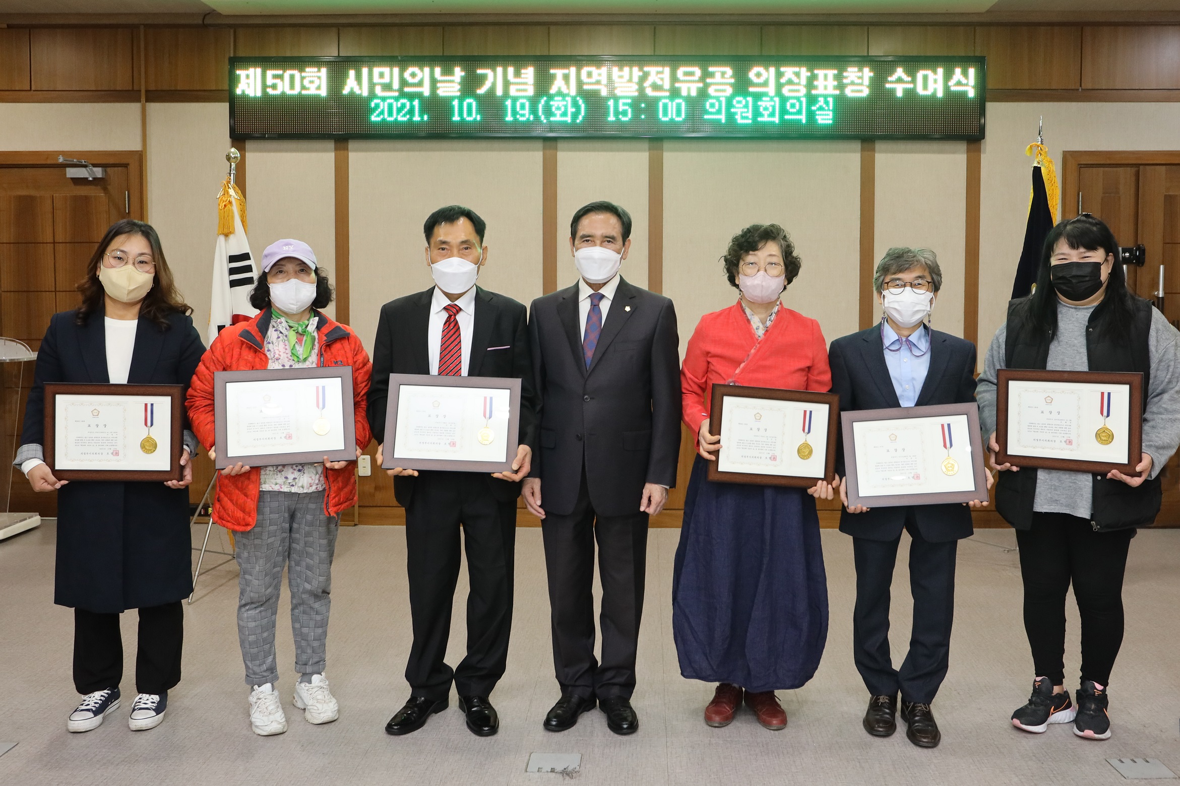 | 의정부시의회, 제50회 시민의날 기념 지역발전 유공 의장 표창 수여 관리자 2021-10-19 836 | |