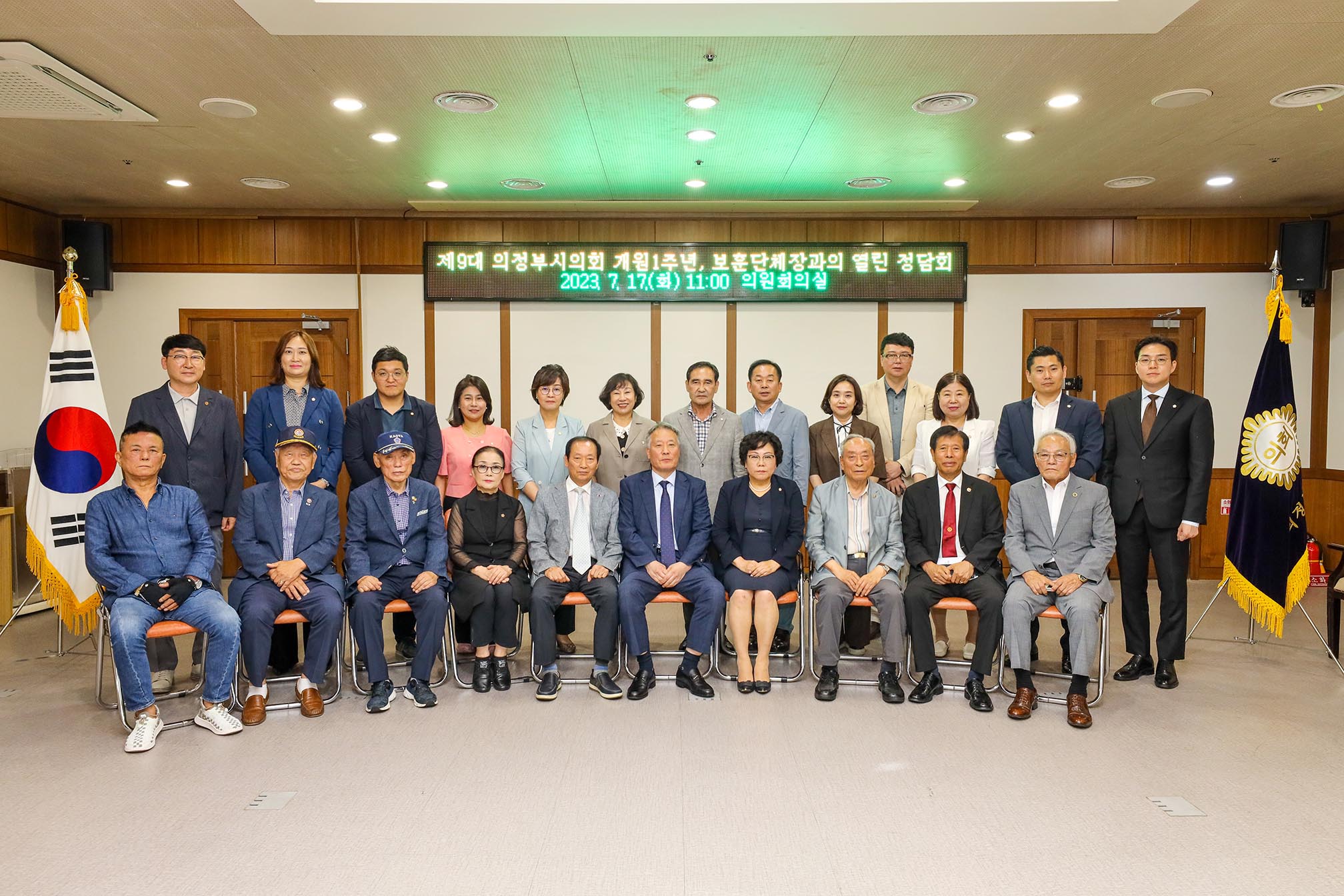 의정부시의회(의장 최정희)는 17일 제9대 의정부시의회 개원 1주년을 맞이하여 관내 보훈단체협의회(회장 남주우)와 정담회를 개최했다. 이번 정담회는 제9대 의정부시의회 출범 1주년을 맞아 보훈 정책 및 단체별 건의 사항을 논의하기 위해 마련됐다. 정담회에는 의정부시 보훈단체협의회 남주우(광복회) 회장을 비롯해 전몰군경유족회, 전몰군경미망인회, 상이군경회, 무공수훈자회, 6.25참전유공자회, 고엽제전우회, 특수임무유공자회, 월남전참전자회가 참석했다. 의원들은 보훈단체장들과의 정담회를 통해 지역현안 사항에 대한 의견과 건의사항을 청취하는 등 뜻깊은 소통의 시간을 가졌다. 또한 보훈단체장들은 의정부 3.1 만세운동기념비 건립, 참전 유공자 배우자 수당(미망인수당) 지급 홍보, 국가유공자 의정부시 정책 홍보책자 제작, 각 단체 회원 수에 비례한 보조금 지원, 경전철 의정부역 안내방송에 보훈회관 포함, 시 주관 보훈행사 예산 증액 편성 요청 등 다양한 의견을 제시했다.