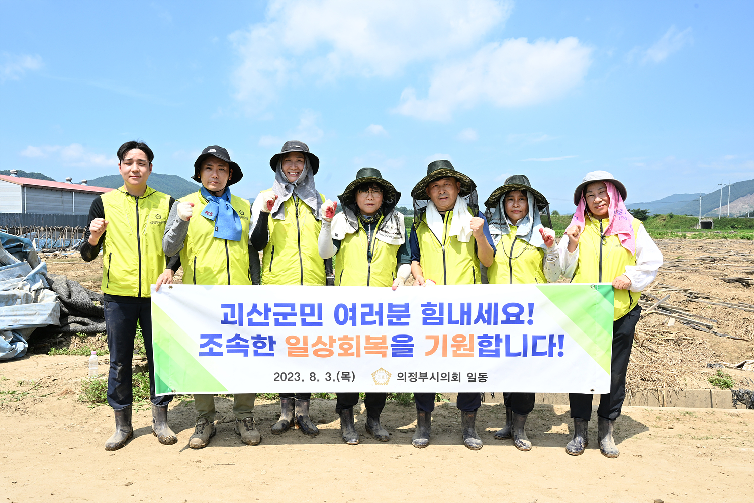 이에 지난 3일, 최정희 의장 등 의원들과 사무국 직원 30여 명은 의정부시와 우호를 다지고 있는 괴산군의 수해 농가를 돕기 위해 발 벗고 나섰다. 어려움에 처한 주민들에게 조금이나마 도움이 되고자 30도가 넘는 폭염 속에도 괴산군 불정면 일원 침수 피해 농가 현장에서 인삼밭 기둥 철거 및 수해 잔해물 제거 정리 등 수해 복구 작업에 구슬땀을 흘렸다.