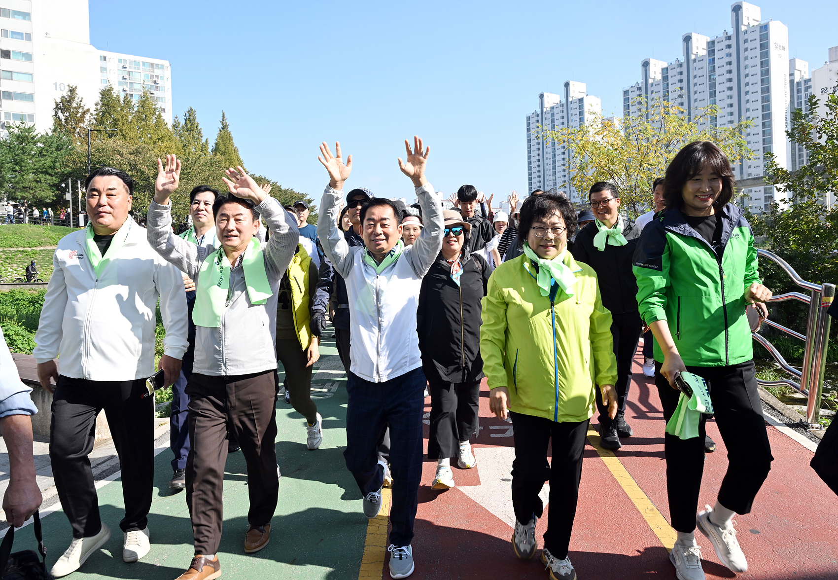 의정부시의회는 12일 중랑천 동막교 광장에서 개최된 ‘2024 한마음 건강걷기대회’에 참여해 시민들과 건강을 증진하고 화합을 도모하는 시간을 가졌다. 이번 행사는 의정부시체육회와 경기일보가 주관했으며, 김연균 의장을 비롯한 시의원들과 김동근 시장, 주요 내빈 그리고 주민들이 함께했다. 대회는 체육회 수석부회장의 개회 선언으로 시작되었으며, 국민의례와 내빈 인사말, 준비운동 등의 순서로 진행됐다. 이후 참가자들은 동막교 광장을 출발해 중랑천변을 따라 왕복 4km를 걷는 코스를 완주했다. 대회 종료 후에는 다양한 공연과 경품추첨이 이어져 시민들에게 즐거움을 선사했다.
