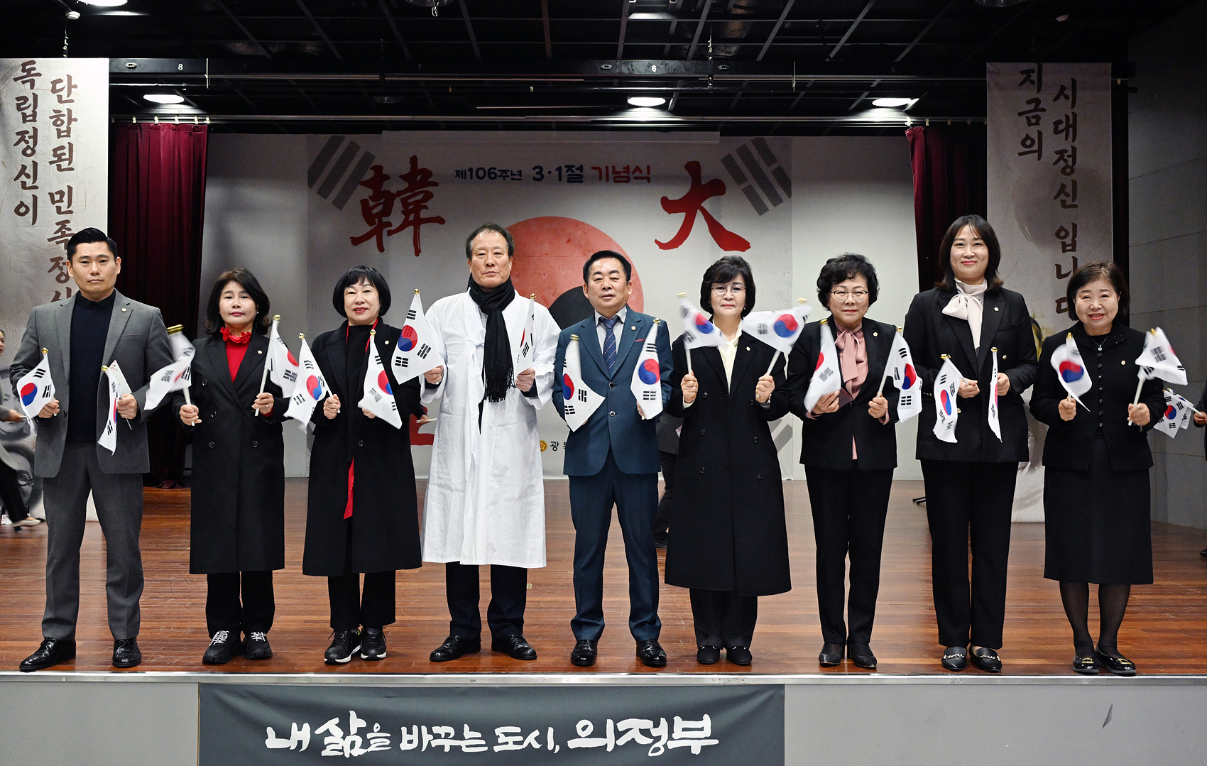 의정부시의회(의장 김연균)는 1일 신한대학교 벧엘관 세미나실에서 열린 제106주년 3·1절 기념식에 참석했다. 이날 기념식에는 김연균 의장을 비롯한 시의원들과 시장, 국회의원, 도의원, 광복회 회원, 보훈단체장, 관내 기관 및 단체장, 독립유공자 유가족 등 300여 명이 함께했다. 행사는 모범 국가유공자 표창, 독립선언서 낭독, 기념사, 기념공연, 3·1절 노래 및 독립군가 제창, 만세삼창 순으로 진행됐으며, 부대행사로 항일 독립운동 관련 사진 전시가 열려 순국선열들의 숭고한 희생과 대한민국의 자주독립 정신을 되새기는 시간이 됐다. 기념식에 참석한 시의원들은 조국의 독립을 위해 헌신한 순국선열들의 애국정신을 기리며, 나라 사랑의 뜻을 다시 한번 깊이 새겼다.