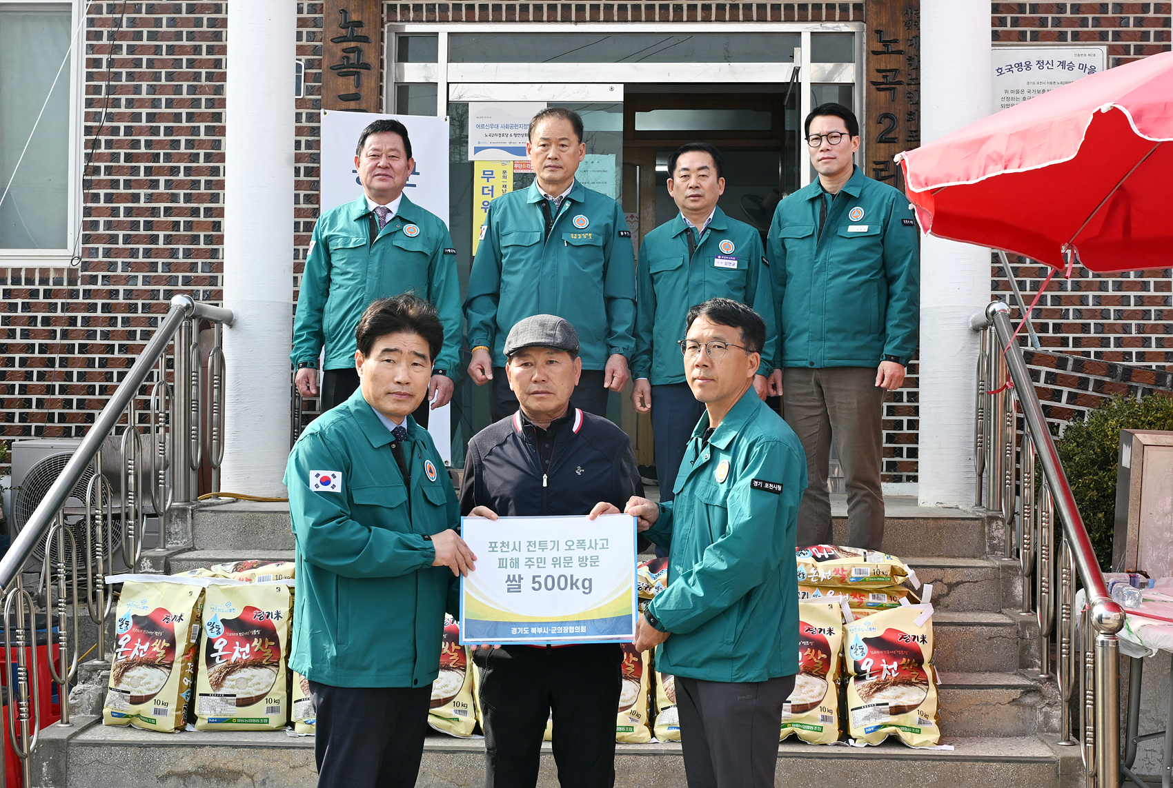 3월 6일 발생한 전투기 오폭사고로 인해 큰 피해를 입은 지역 주민들을 지원하고, 복구를 위해 힘쓰고 있는 관계자들을 격려하기 위해 마련됐다. 경기 북부 지역의 시·군 의장들이 함께 피해 현장을 직접 살펴보고, 주민들의 어려움을 경청하는 시간을 가졌다. 경기북부시군의장협의회는 노곡리 마을회관에서 애로사항을 청취하고, 피해주민들에게 조금이나마 도움이 되고자 쌀 500kg 등 위문품을 전달했다. 김연균 의장은 “갑작스러운 사고로 피해를 입은 주민 여러분께 깊은 위로의 말씀을 전한다”며 “뜻을 함께해주신 경기북부시군의장협의회 의장님들께도 감사드린다”고 말했다. |